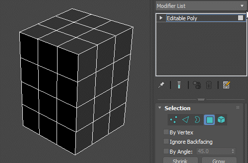 This checkbox is turned on as a default when you create an extruded object, but if you load an extruded object from a max file, the checkbox is turned off, maintaining the same material id assignment for that object as it had in r1.x. This checkbox is turned on as a default when you create an extruded object, but if you load an extruded object from a max file, the checkbox is turned off, maintaining the same material id assignment for that object as it had in r1.x. Select an edit poly or editable poly object.